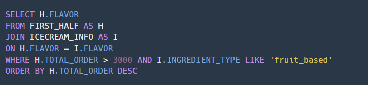 ★ FIRST_HALF 테이블과 ICECREAM_INFO 테이블을 JOIN 하는데 FLAVOR이 같은 것들만 합침