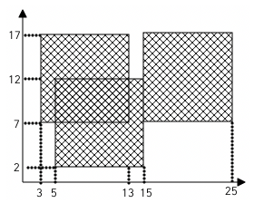 예를 들어 흰색 도화지 위에 세 장의 검은색 색종이를 그림과 같은 모양으로 붙였다면 검은색 영역의 넓이는 260이 된다.
