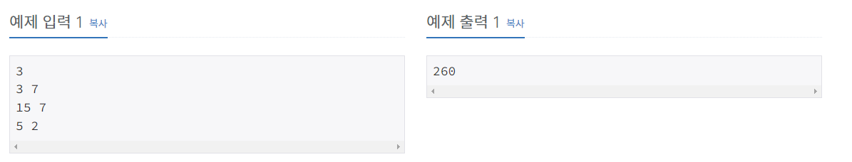 첫째 줄에 색종이의 수가 주어진다. 이어 둘째 줄부터 한 줄에 하나씩 색종이를 붙인 위치가 주어진다. 색종이를 붙인 위치는 두 개의 자연수로 주어지는데 첫 번째 자연수는 색종이의 왼쪽 변과 도화지의 왼쪽 변 사이의 거리이고, 두 번째 자연수는 색종이의 아래쪽 변과 도화지의 아래쪽 변 사이의 거리이다. 색종이의 수는 100 이하이며, 색종이가 도화지 밖으로 나가는 경우는 없다
