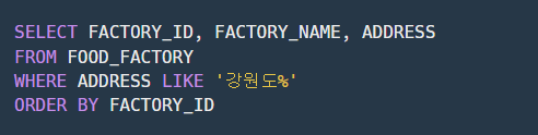 ★ WHERE절에서 주소(ADDRESS)가 '강원도'로 시작하는 값들만 추출
