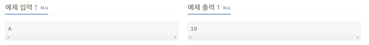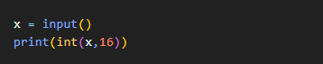 첫째 줄에 16진수 수가 주어진다. 이 수의 최대 길이는 6글자이다. 16진수 수는 0~9와 A~F로 이루어져 있고, A~F는 10~15를 뜻한다. 또, 이 수는 음이 아닌 정수이다.
