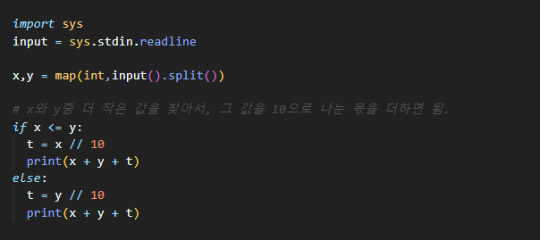 첫째 줄에 X와 Y (0 ≤ X, Y ≤ 109)를 의미하는 정수가 공백으로 구분되어 주어진다.