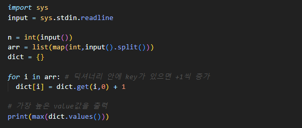 ★ 그렇기에 그릇의 크기를 딕셔너리의 key로 잡고, 그 개수를 value로 설정하여, value값들 중 max값을 출력해주면 그 값이 탑의 최소 수가 됩니다 :)