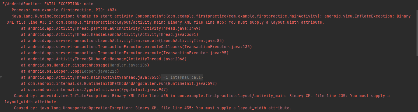 E/AndroidRuntime: FATAL EXCEPTION: main Process: com.example.firstpractice, PID: 4446