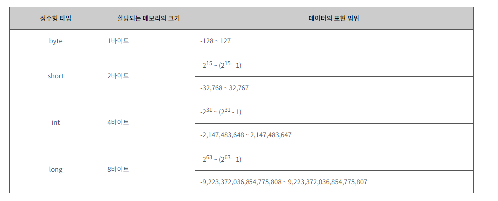 BigInteger를 사용해야 하는 이유 Type 범위 int -2,147,483,648 ~ 2,147,483,647 long -9,223,372,036,854,775,808 ~ 9,223,372,036,854,775,807 int는 메모리 크기는 4byte로 표현할 수 있는 범위는 -2,147,483,648 ~ 2,147,483,647이고 long