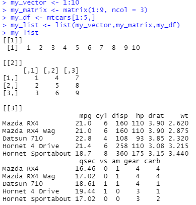 - 행렬의 첫 번째 인수는 R이 행렬의 행과 열에 정렬할 요소입니다.