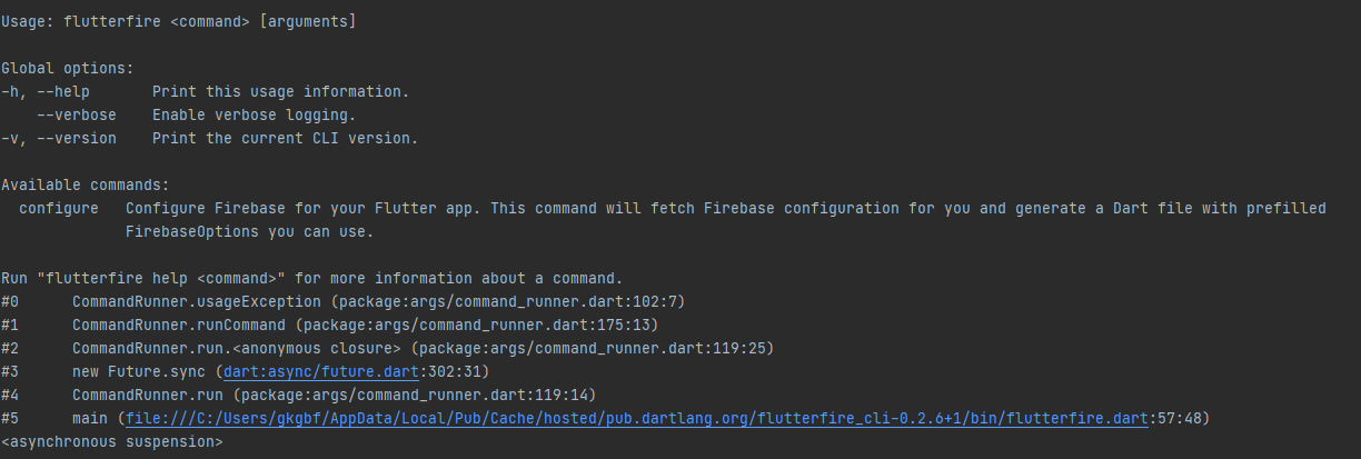 flutterfire -—help