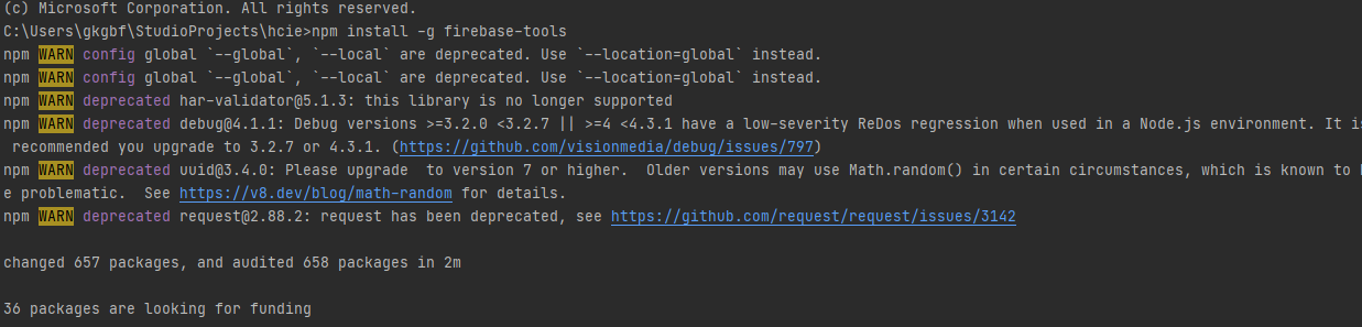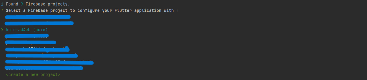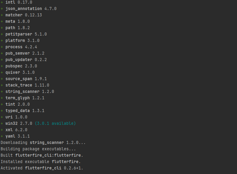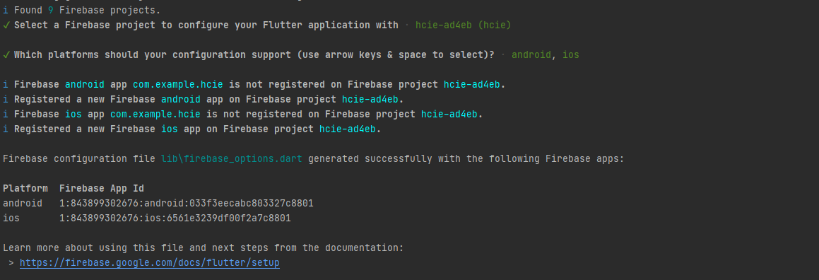 명령어가 정상적으로 실행한다면 flutterfire가 제대로 설치된 것입니다.