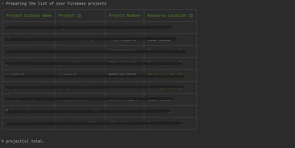 명령어가 정상적으로 실행한다면 flutterfire가 제대로 설치된 것입니다.