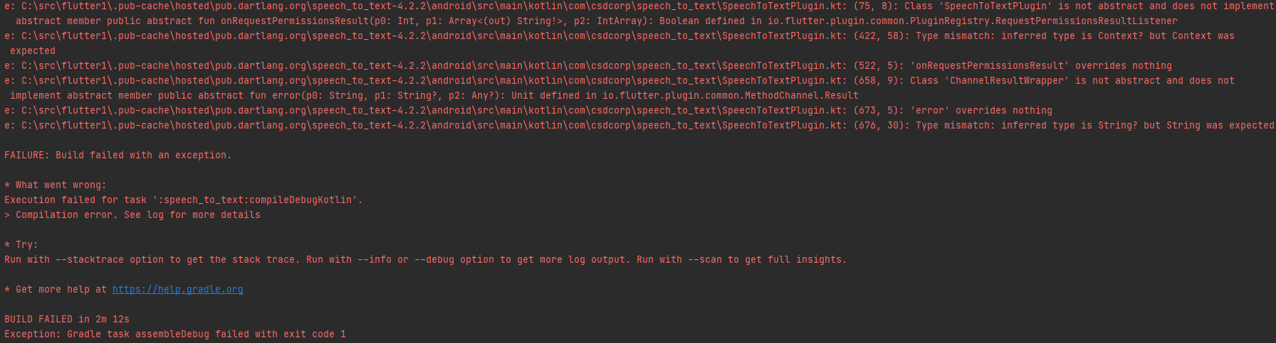 프로젝트에서 STT (speech to text) 기능을 사용할 일이 있어서 패키지를 다운 받고 빌드를 하는 과정에서 다음과 같은 에러를 만났습니다