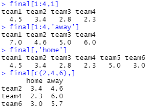 - matrix[,1]: 첫 열의 모든 원소 선택