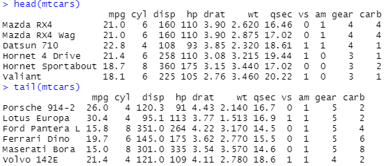 - head(): 데이터 프레임의 첫 번째 n개(defualt 6)의 관측치를 보여줍니다. ex) head(Dataframe,n)