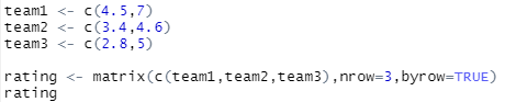 - nrow 인수는 행렬이 가지고 있어야 할 행의 수를 나타냅니다.