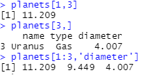 - 콤마를 사용하여, 어떤 행과 열의 값을 추출할지 결정할 수 있습니다.
