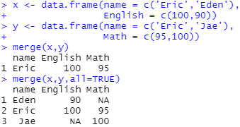 all 옵션을 TRUE로 주게 되면, 결합되는 데이터 프레임의 모든 요소가 들어가게 됩니다.