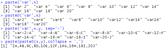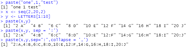- paste 함수와 비슷하지만 나열된 원소 사이에 공백을 두지 않는다는 차이점이 있습니다.