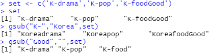 - 존재하는 패턴을 찾아 새로운 패턴으로 대체해주는 함수입니다.