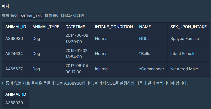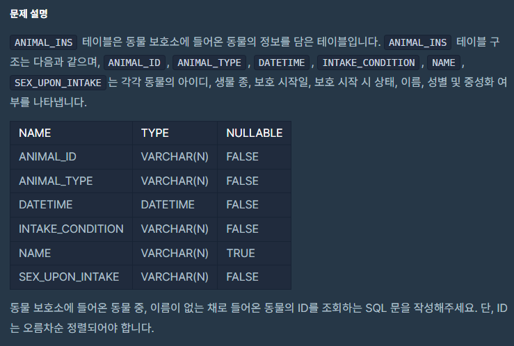 - where문에서 컬럼이 NULL값을 가지고 있는 것을 찾으려면 name == null 이 아닌 name is null을 사용해줘야 합니다.